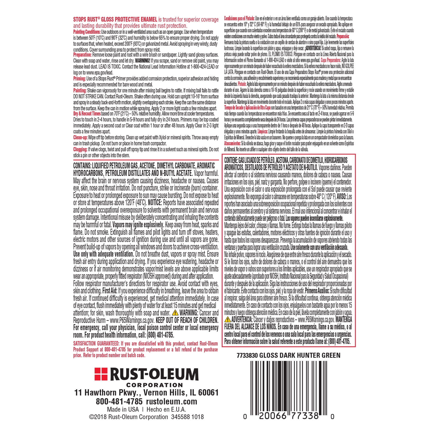 Rust Oleum 7733830 Stops Rust Spray Paint 12 Oz Gloss Dark Hunter Green Spray Paints Amazon Com